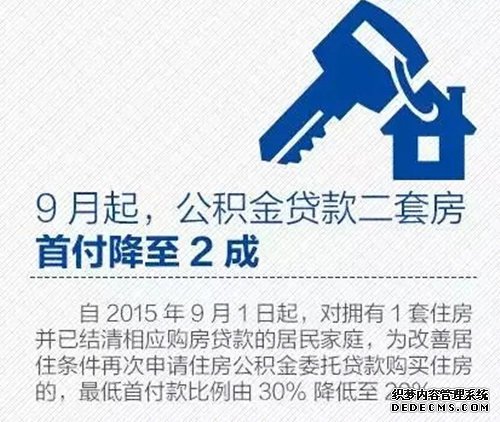 近日,住建部、財政部、央行三部委聯(lián)合通知,自9月起,公積金貸款購買二套房最低首付比例降至20%;北京、上海、廣州、深圳可在國家統(tǒng)一政策基礎(chǔ)上,自主決定申請住房公積金委托