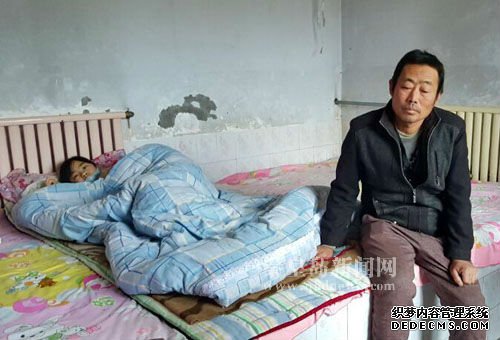 初冬時節(jié),日漸寒冷。在撫寧區(qū)留守營鎮(zhèn)黃金山頭村一間普通的農(nóng)家房屋里,魏文先守候在身患白血病的女兒婉敬身邊。怕女兒著涼,即使是在白天,他也讓女兒躺進(jìn)被窩。 其實(shí),50歲的魏文先自己也是癌癥患者。身患胃癌晚期的他多年來飽受病痛的折磨,卻顧不上調(diào)理自己的身體,全部的心思都傾注在同樣身患重病的女兒身上。想法子治好女兒的病,讓她重新變成那個開朗愛笑的小天使,是這位父親唯一的心愿。 厄運(yùn)襲來,四口之家的幸福戛然而止 11月10日上午,當(dāng)記者走進(jìn)這個兩人相互守候的家時,12歲的婉敬躺在炕上睡著了,魏文先想用兩只粗糙的手掌把女兒身上的被子輕輕地往上拉一點(diǎn)時,婉敬醒了,沖爸爸眨眼一笑,露出兩排小白牙。 魏文先趕緊給婉敬蓋好被子,囑咐她躺好。想起剛才女兒狡黠的模樣,他憨憨地笑了,婉敬一直是個愛笑的孩子。繼而眉頭深鎖,寬廣的額頭上幾條皺紋擠在一起,使他看起來比同齡人要老上幾歲。 魏文先原本擁有一個溫馨的四口之家,他和妻子有兩個女兒,婉敬是小女兒。魏文先靠著自己的木匠手藝以及和妻子種地維持生計(jì)。一家人的日子雖然不富裕,倒也有盼頭。 然而厄運(yùn)悄無聲息地接近了這家人,作為家中頂梁柱的魏文先染上了重癥。“我得了胃癌,很快發(fā)展到晚期,2008年做了手術(shù),病情雖然好轉(zhuǎn),卻喪失了勞動能力。”魏文先坐在炕上,有些頹然地對記者說著。 頂梁柱突然倒下,讓本不富裕的家庭一下子陷入困境。然而,一家人的厄運(yùn)卻并沒有結(jié)束,2013年,當(dāng)時念小學(xué)4年級的婉敬身上開始不斷起小血點(diǎn),一旦磕碰流血了就很難止住。帶孩子到醫(yī)院檢查,一張?jiān)\斷書讓風(fēng)雨飄搖的家庭陷入了更深的泥淖——婉敬患上了再生障礙性貧血。