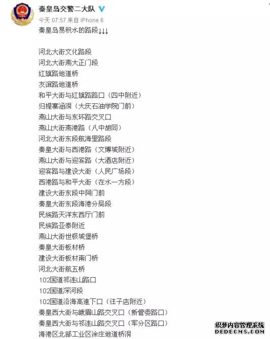 持續(xù)的暴雨天氣頻襲秦皇島,朋友圈各種曬雨。秦皇島交警二大隊(duì)公布了秦皇島易積水路段,提醒廣大市民朋友繞行,秦皇島某些地段被淹情況相對(duì)較嚴(yán)重??磥?lái),以后買房不僅僅要關(guān)