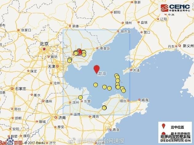 秦皇島海域發(fā)生3.9級(jí)地震 部分人有輕微震感