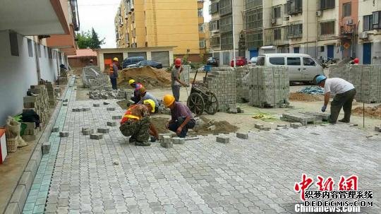 新聞北里小區(qū)正在鋪設(shè)人行道路面。