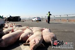 秦皇島:大貨車高速側(cè)翻 30余頭豬掉落路面嚇癱 日期:2016-04-11 19:16:05 點(diǎn)擊:459 好評(píng):0